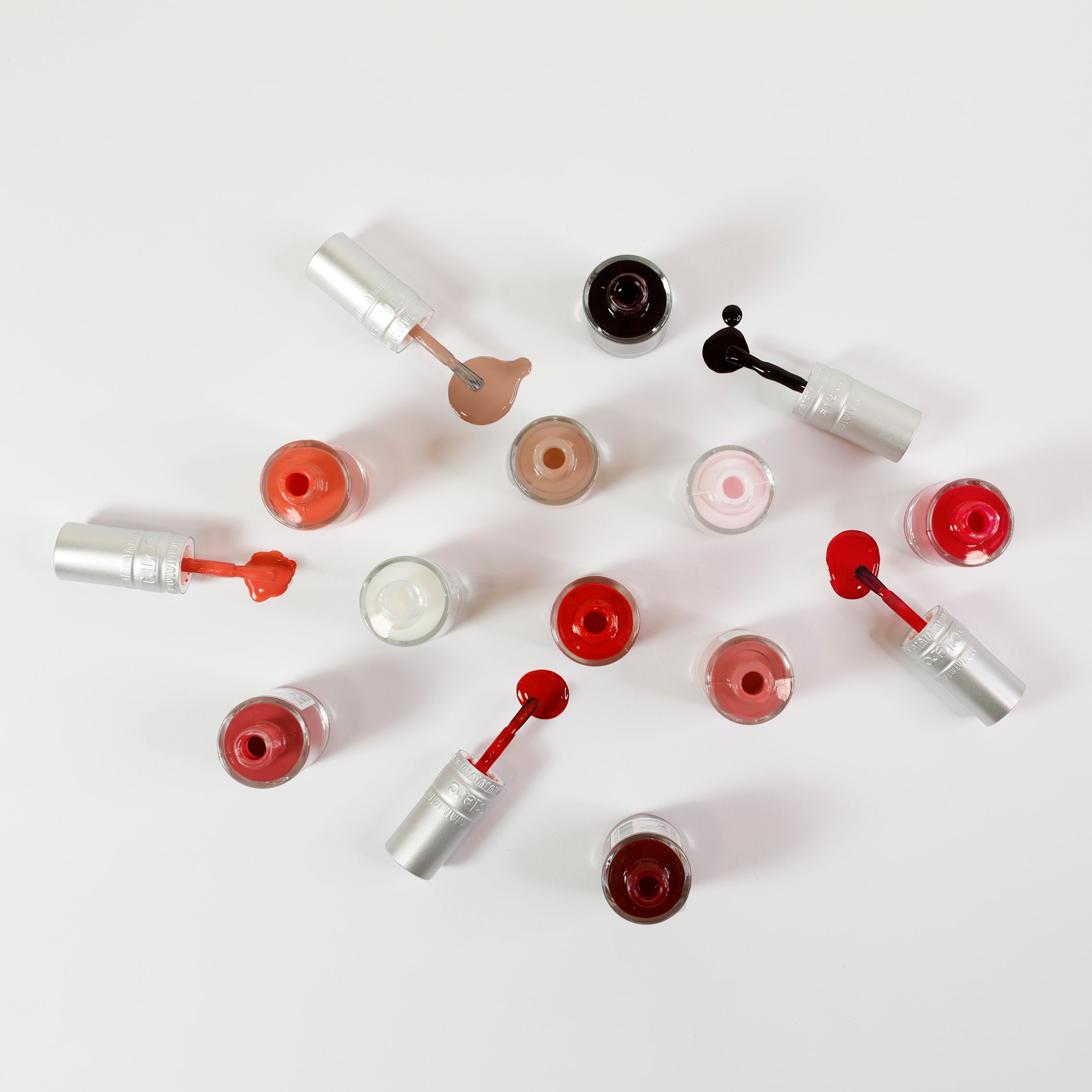 BASE & TOP COAT : ETHYL ACETATE, BUTYL ACETATE, NITROCELLULOSE, ADIPIC ACID/NEOPENTYL GLYCOL/TRIMELLITIC ANHYDRIDE COPOLYMER, ACETYL TRIBUTYL CITRATE, ISOPROPYL ALCOHOL, GLYCOLIC ACID, N-BUTYL ALCOHOL, ETOCRYLENE, TRIMETHYLPENTANEDIYL DIBENZOATE, AQUA (WATER), POLYVINYL BUTYRAL, CI 60725 (VIOLET 2).